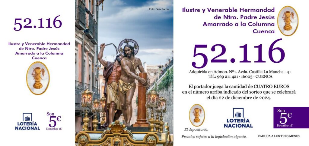 Ya tenemos disponible la Lotería de la Hermandad. Se podrá adquirir en los cultos de la Hermandad que se celebrarán a principio de Septiembre así como poniéndose en contacto con los directivos de la misma.